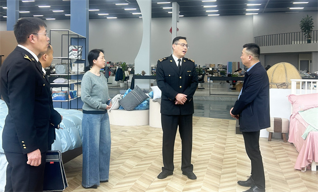 4月16日,濱州海關(guān)黨委書記、關(guān)長李光一行來公司參觀調(diào)研。濱州海關(guān)綜合業(yè)務(wù)一科科長劉金輝,綜合業(yè)務(wù)二科副科長朱士帥陪同調(diào)研。公司黨委委員、總經(jīng)理閆英山,市場運營部綜合事務(wù)管理主任楊霞,華紡國際進口部經(jīng)理韓黎明,服裝面料業(yè)務(wù)經(jīng)理王新東,儲運部主管楊箐箐陪同。